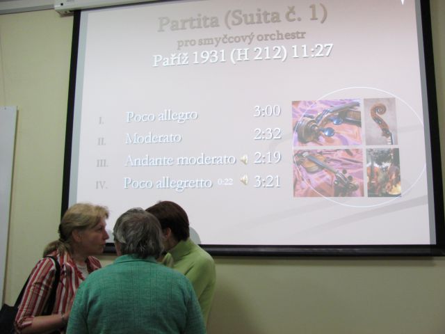 První přednášku věnovanou orchestrálním dílům odstartuje kontroverzní skladba Poločas (Half-Time), u níž byl autor již předem připraven na „nějaký ten kravál“ a nutno dodat, že se jej také v náležité míře dočkal. Včetně nařčení, že opisuje od Stravinského, což ostatně budete moci posoudit sami. Další dílo podobného ražení, jehož název Vřava (La bagarre) „kravál“ přímo evokuje, se ovšem s podobnou reakcí nesetkalo, naopak zaznamenalo velký úspěch při premiéře ve Spojených státech a otevřelo tak skladateli cestu do světa. Kromě toho uslyšíte ukázky z dalších osmi kompozic, z nichž především Dvojkoncert pro dva smyčcové orchestry, klavír a tympány se trvale těší velké hráčské i posluchačské oblibě. Všechny skladby vás překvapí svojí originalitou, různorodostí i zajímavými okolnostmi jejich vzniku. Opomenuty nezůstanou ani známé osobnosti spojené s životem a dílem Bohuslava Martinů, jako je Sergej Kusevickij, Václav Talich, Paul Sacher, Vítězslava Kaprálová, ale také např. Jaroslav Ježek, Ondřej Sekora a další.